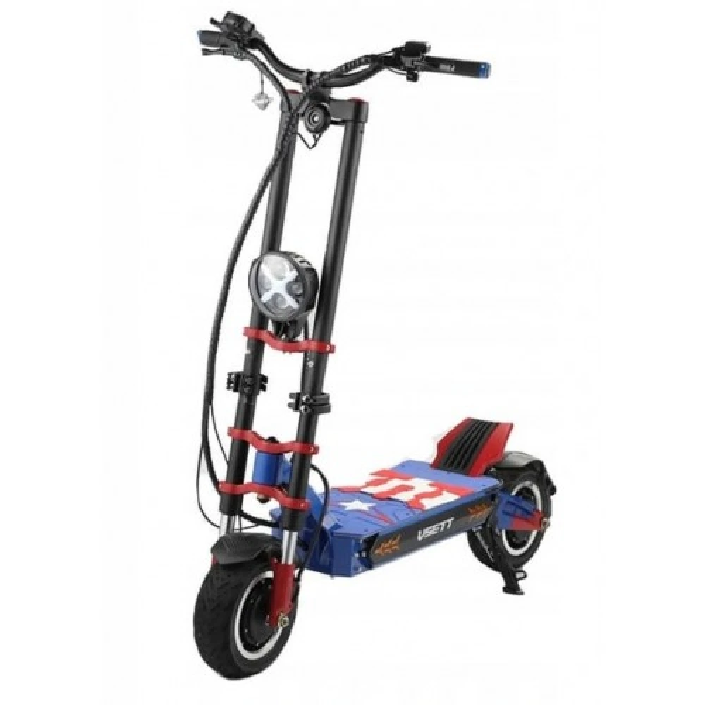Модель оснащена современным двигателем мощностью 3000 Вт. Улучшение технических показателей техники дает возможность разгоняться до 85 км/час. Прочная алюминиевая рама рассчитана на максимальную грузоподъемность 130 кг. Широкая платформа для ног позволяет комфортно располагаться при длительных поездках. Подвески на амортизаторах рассчитаны на свободное преодоление ям и кочек. Фирменный ЖК-дисплей отображает основные показатели и скоростные характеристики модели. Дисковая гидравлическая тормозная система обеспечивает безопасное движение.