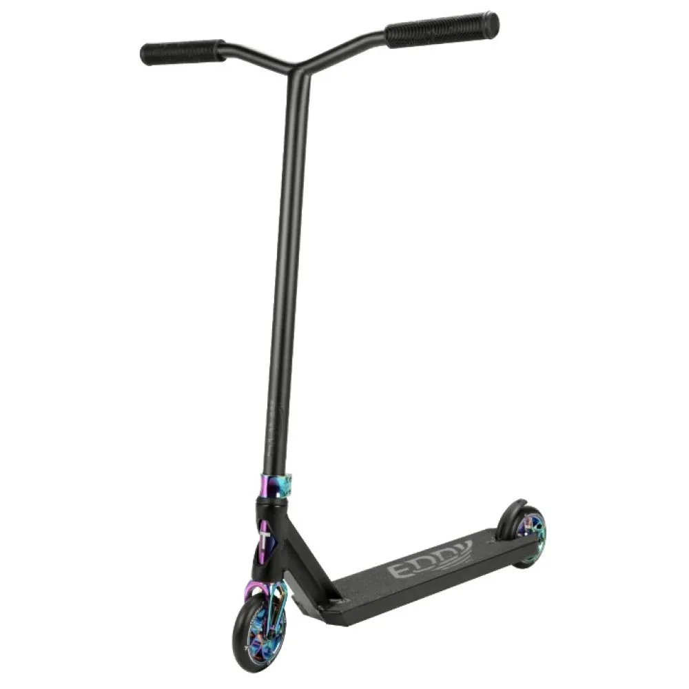 Eddy - Трюковой самокат от компании Techteam модельного ряда (2021) Это самый легкий самокат во всей линейке и идеально подходящий для райдеров с ростом от 160 до 177 см. Самокат из алюминия, с полиуретановыми колесами жесткости и дисками из 88-го алюминия класса А. У него классический и хорошо зарекомендовавший себя руль в форме крыльев чайки. Габариты деки, довольно стандартны, и имеют полезную площадь в 39 см.